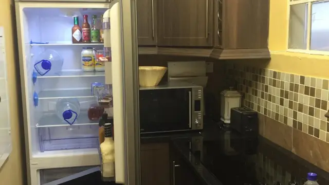 This beautifully laid out apartment features a modern fitted kitchen equipped with a ceramic top stove, seamlessly flowing into an open plan lounge and dining area designed for both relaxation and entertaining. The flat has a prolific borehole complemented by a neat, well-maintained bathroom and toilet, offering functionality with a clean, contemporary finish.