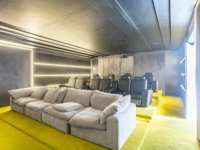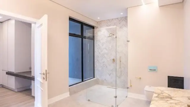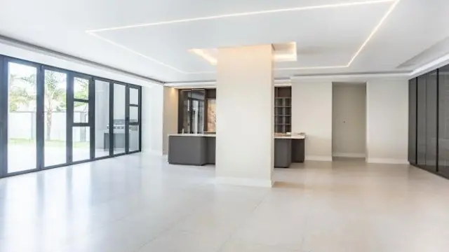 Ground floor offering formal lounge, dining and TV areas, gourmet kitchen with fully integrated appliances, two bedroom self-contained guest wing with kitchenette, home cinema, elevator to first floor. First floor 5 bedrooms Ensuite, pyjama lounge, gym, sauna, steam room. External features entertainer's patio with braai area, swimming pool, boma and firepit, 3 bedroomed staff quarts, prolific borehole, gas generated back up system and 100 KV generator , covered multipurpose court, garages and more extras please call for detailed info.