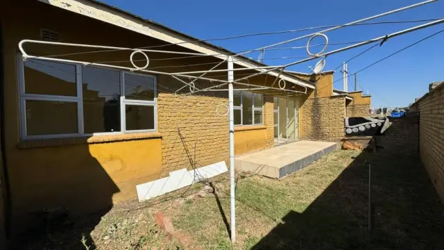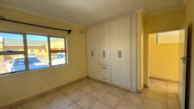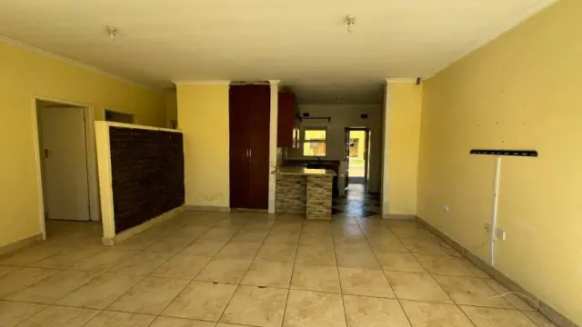 Security is paramount, with an electric gate, security boom, and outdoor lighting enhancing peace of mind. This home also features built-in cupboards, a spacious lounge, dining room, and parking space. Call now to view
