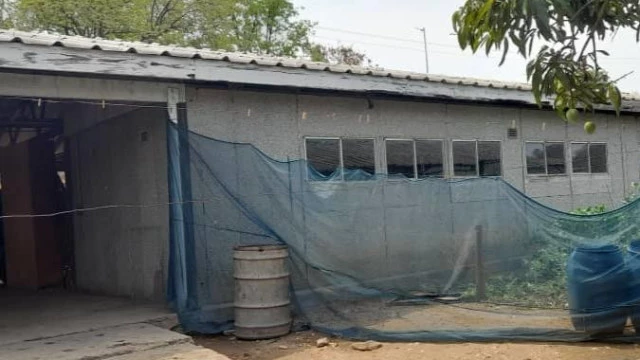There is a second structure which is on the next level down measuring 8m x 12. 5m. This houses 2 large cold room units. They used FRION 22. This also has a prepaid power metre which is 3 phase.