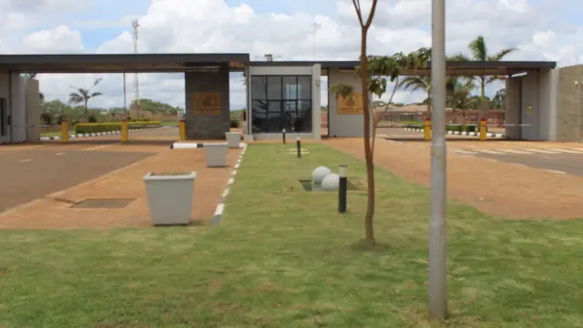 The entrance to the stand is marked by a modern gate, blending concrete and glass, which is complemented by a beautifully landscaped approach featuring lush grass and neat pavingan inviting welcome for future occupants. With well-maintained surroundings, the entrance showcases ambient lighting and planters that enhance its appeal.