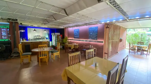 This charming restaurant available for rent in the suburbs of Bulawayo combines a cozy atmosphere with functional design, making it an ideal choice for your culinary venture. The main dining area welcomes guests with its rustic yet contemporary style, featuring warm terracotta-painted exposed brick walls that set a charming backdrop.