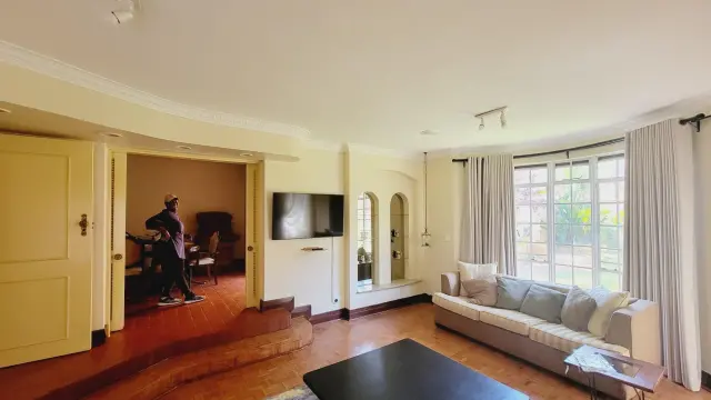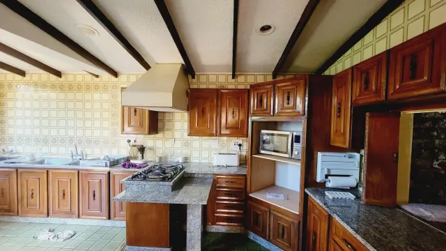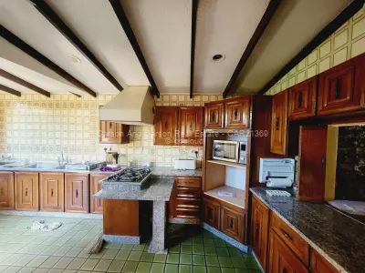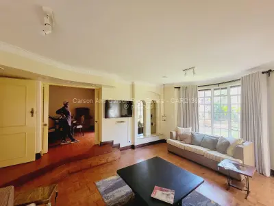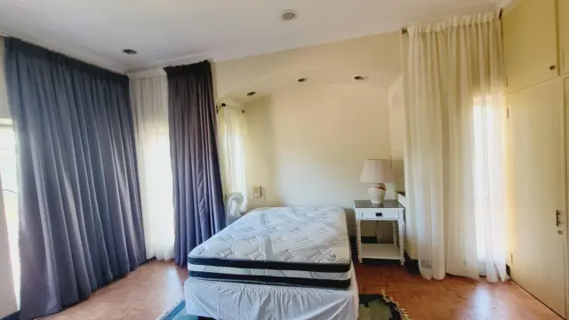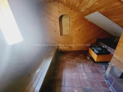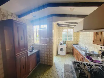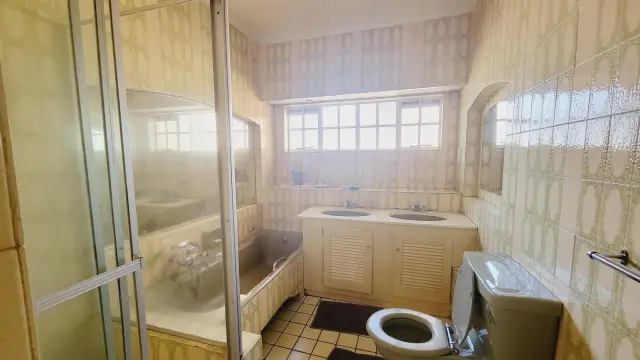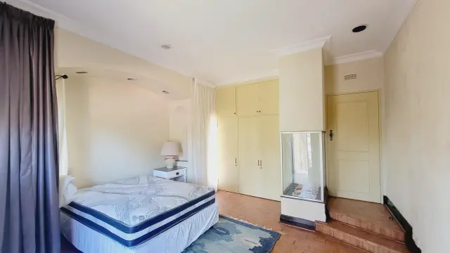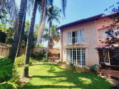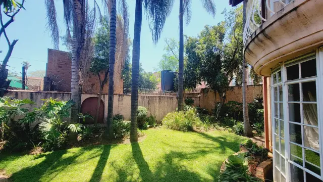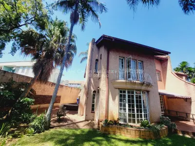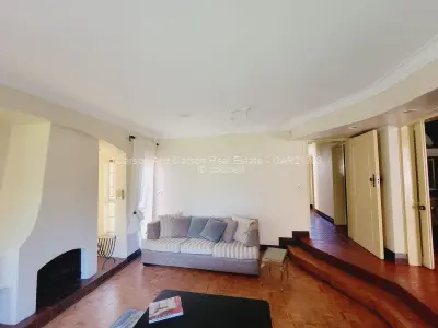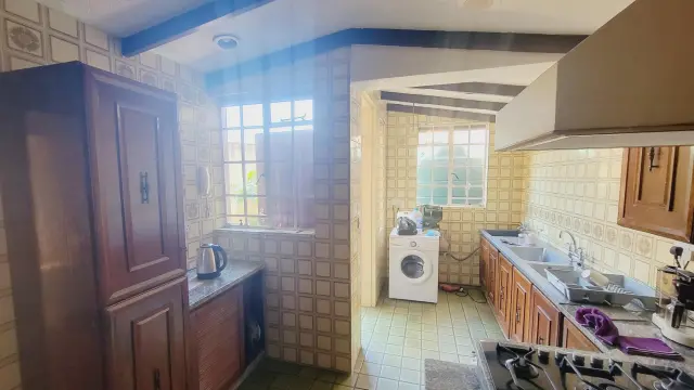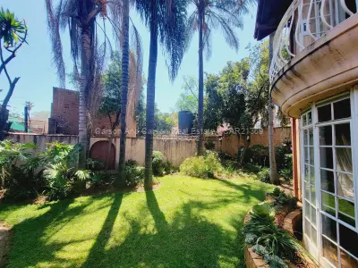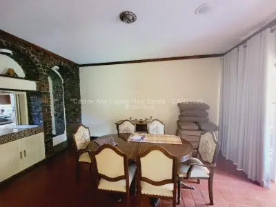 Downstairs is a fully fitted kitchen with all appliances and kitchen utensils, spacious sunken lounge with fireplace and beautiful garden views, second small lounge, dining area that leads to the patio, guest toilet, sauna. There is an area for barbecue. There are 2 parking areas within the premises with one being a lockup garage.