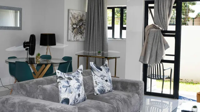 Discover the perfect short-stay rental option in the heart of Newlands, Harare with these modern four-bedroom villas. $200/night or $3200 Monthly. These two-storey townhouses boast an inviting faade featuring a contemporary blend of gray and brown tones, complemented by gabled metal roofs. Each unit is designed with spacious interiors that maximize natural light, highlighted by large windows, and includes a comfortable lounge and a stylish dining area.