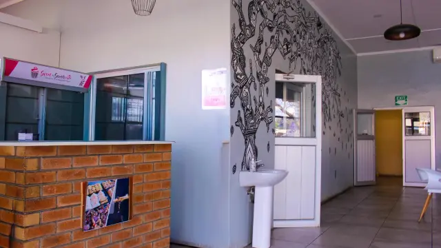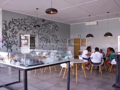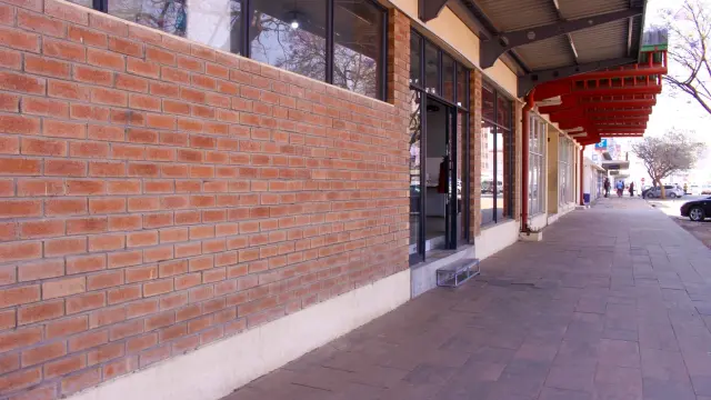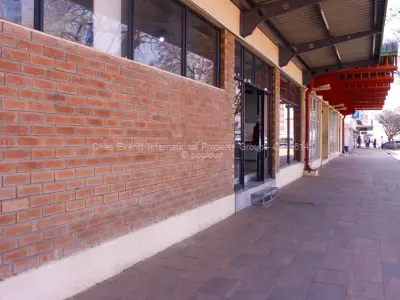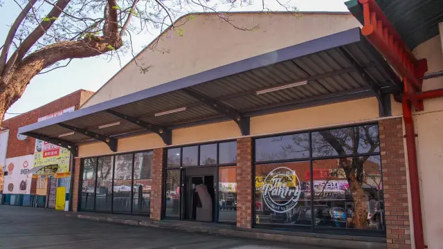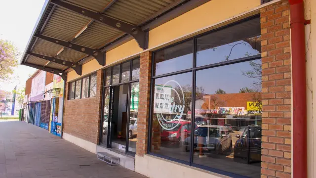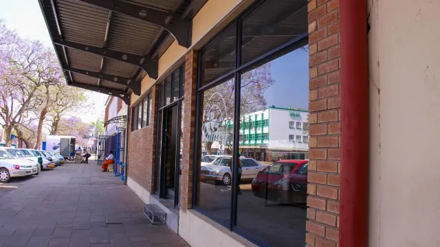 Discover a prime restaurant opportunity for rent in the bustling Bulawayo City Centre. This 250sqm retail space boasts a modern aesthetic with a striking brick facade complemented by large windows, fostering an inviting atmosphere filled with natural light. The overhanging metal roof provides essential shade, enhancing the overall appeal for potential customers.