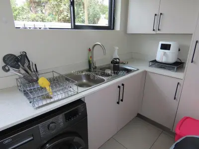 In a well-run Complex of 12 with 3 Bedrooms and 2 Bathrooms, this neat Townhouse in Greendale will be ready to rent in the next few weeks. A spacious entrance hall area leads to an open plan Lounge, dining and modern fitted Kitchen with electric oven and gas Hob with a separate scullery to the side. Across the central outside courtyard are 3 Bedrooms and 2 Bathrooms with the main ensuite opening out onto the Garden via beautiful glass sliding doors. A modest side front Garden along with the central open Courtyard is ample space to entertain.