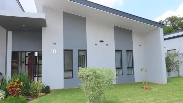Other features to the Unit include a double carport, 200 litre Solar Geyser, a new 3. 8 KVA Invertor (excludes batteries), Solar panels, electric fence, 24hr security with a Guard stationed at the gate. A a borehole currently yielding 5000l/ hour with 30,000 litres worth of tanks for communal storage and boundary wall 2. 7m high. Levy included in the rental figure. This is an UNFURNISHED Unit. Two small pets are permitted. Building area: 148m2, total area: 500m2. Viewing by appointment.