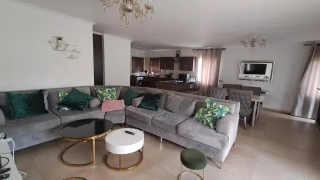 The property has a lovely wrap around garden with well manicured lawn, water tank, prolific borehole, 5kv solar system and a double carport. The property is secure and safe.