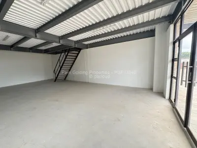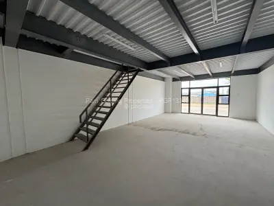 Newly built retail units available for rent in Msasa. Each unit comprises a ground-floor storefront measuring 55 sqm, with a 55 sqm mezzanine floor suitable for offices or additional storage, and includes a private toilet.