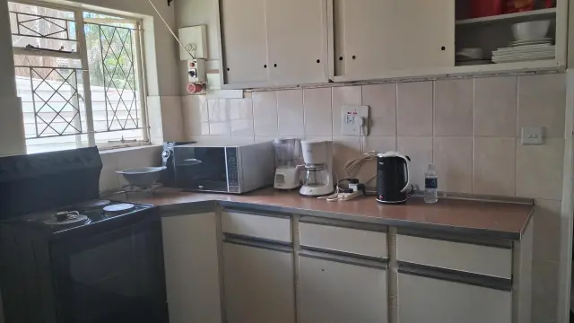 The flat is equipped with essential amenities such as two bathrooms, and garage for secure parking. Enjoy modern conveniences including a solar geyser, internet connection. The complex is fully walled with electric gate ensuring privacy and security. This flat promises a comfortable and convenient lifestyle in a sought-after location.