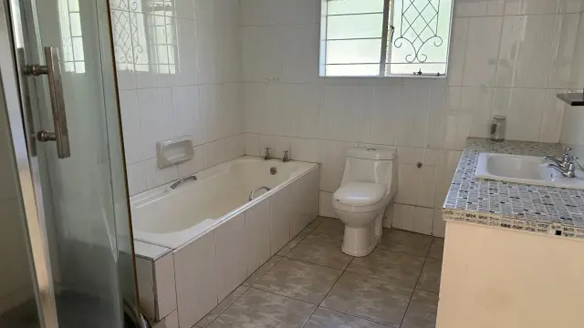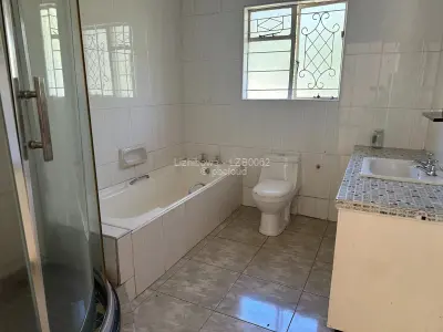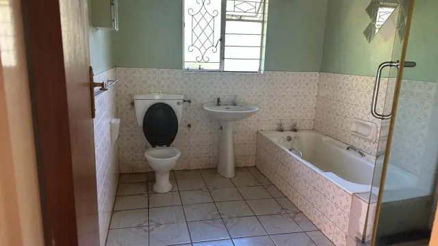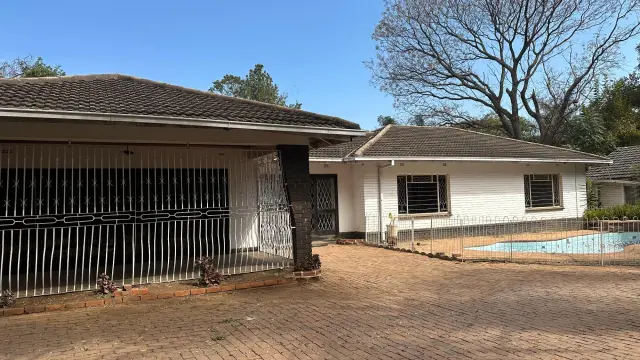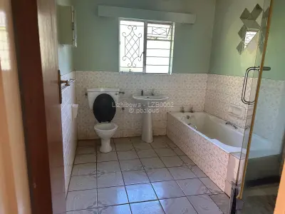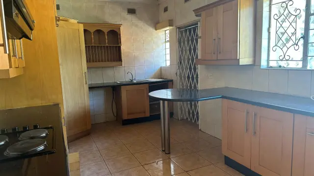 4 bedroomed house , 2 lounges, bar area, dining room, fitted kitchen, 2 bathrooms, built in cupboards, borehole water, very big yard, entertainment area. Suitable for both commercial and residential purposes,