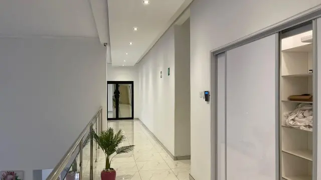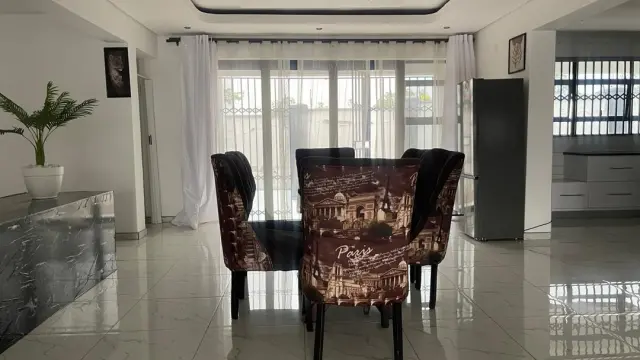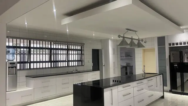 Quick facts This home has 7 bedrooms, 6 bathrooms, an openplan kitchen, dining and lounge, a fitted kitchen with scullery and pantry, 3 lounges, a prayer room, laundry room, bar, gym, double lockup garage, a robust solar system and solar geyser, alarm and CCTV, tiled floors throughout, and is fully furnished in a walled and gated setting.