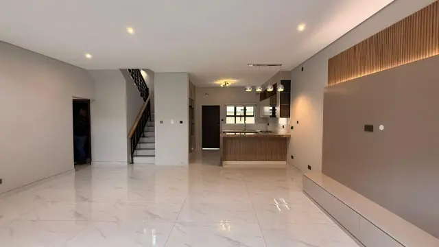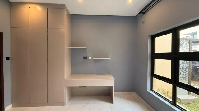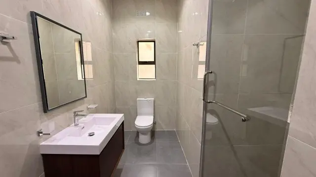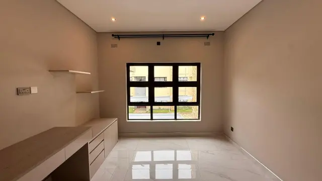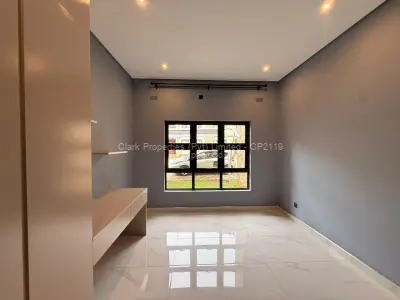 This extremely modern duplex offers secure and convenient living in a well-serviced complex. The front door is fitted with a passcode or fingerprint lock, ensuring advanced security. Residents benefit from a communal borehole, backup water storage, and a 10kVA solar system, alongside a prepaid ZESA meter. Gas is supplied to every unit, with usage paid individually. A 24-hour guard provides peace of mind.