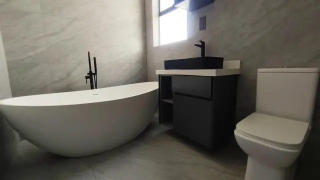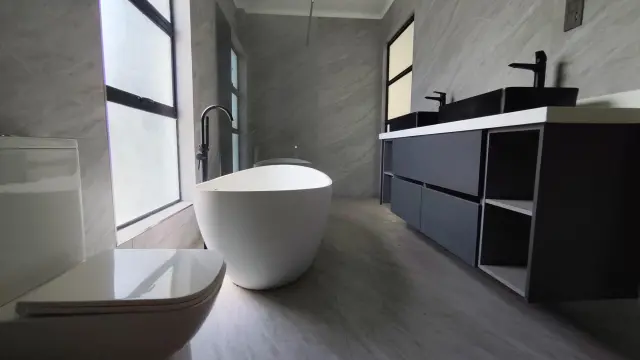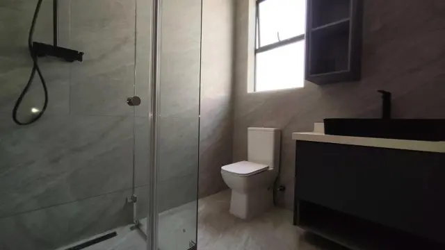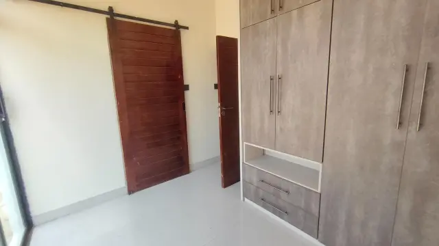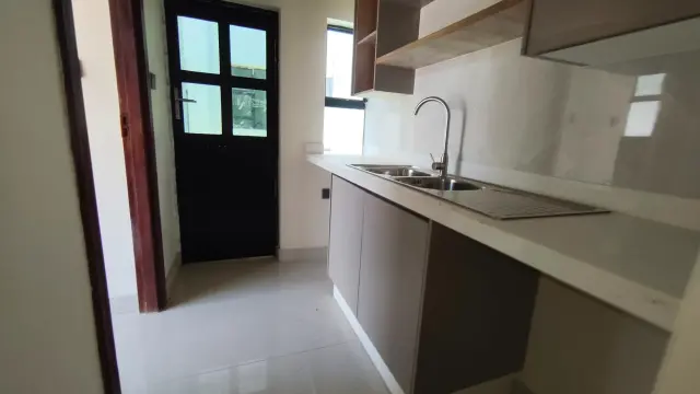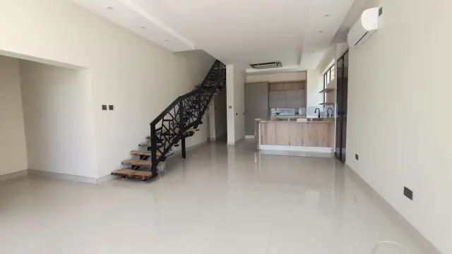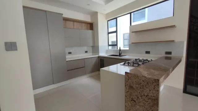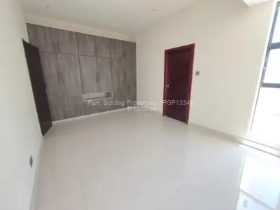 The kitchen is fitted with a four-plate gas stove and gas oven, ensuring convenience and reliability. The home is further enhanced by a 5kVA solar system with two batteries. Additional features include staff quarters, modern finishes throughout, and a functional layout suited for families or executive tenants seeking secure, low-maintenance living.