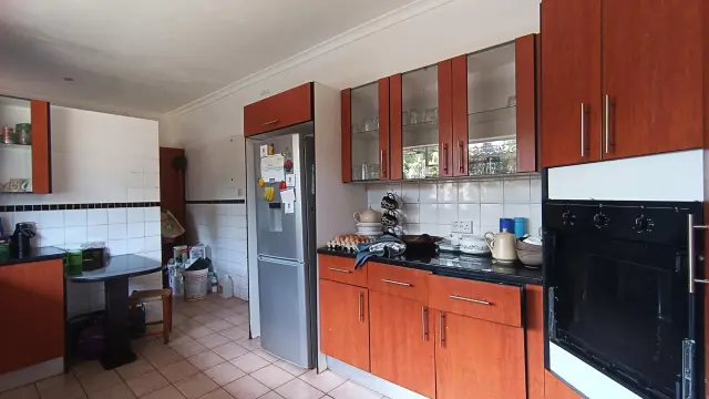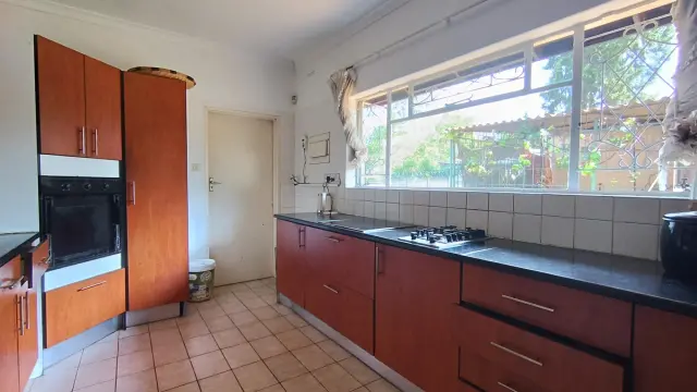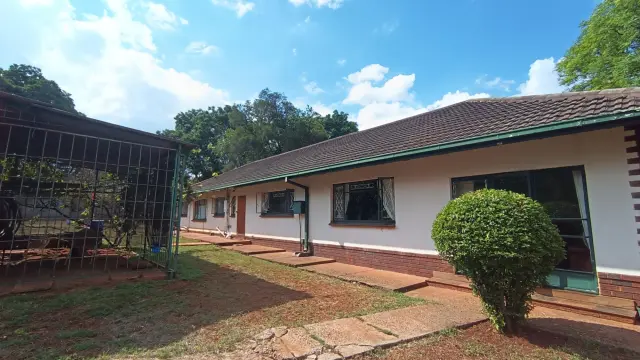There is a 2 room staff cottage, 2 lockable garages and 2 carports spaces with extra tarred car parking area suitable for offices. The garden has large trees and lots of quiet areas for one to retreat to. This property has an alarm system and currently a safeguard rapid response system in place.