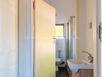 The living areas are designed for both comfort and entertaining, featuring a fully fitted kitchen with oven and hob, a dining room, and a spacious lounge that opens onto a verandah overlooking the garden.