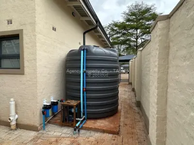 Extras Include: prepaid meter, 5kva inverter with panels, solar geyser, fitted gas hob, curtains provided throughout, private 5000ltr water tank (with filtration system), communal tanks, biodigester, guardroom and single shadeport.