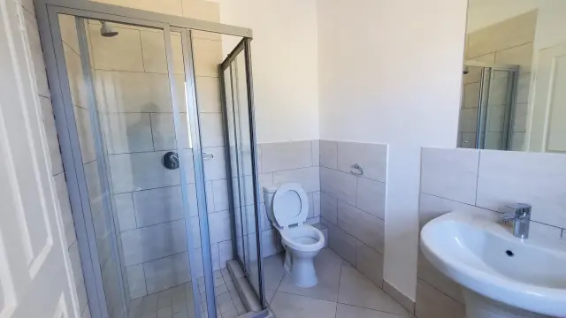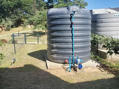 Available for rent is a two-bedroom flat located in the secure and well-regarded Arlington area of Harare. The property features a 5kVA inverter with a lithium battery for power backup and a 5000-litre water tank to ensure a consistent water supply. The flat offers an open-plan kitchen, dining, and lounge area, with two bedrooms upstairs, including a main bedroom with an en-suite bathroom and a second bedroom with access to a shared bathroom.