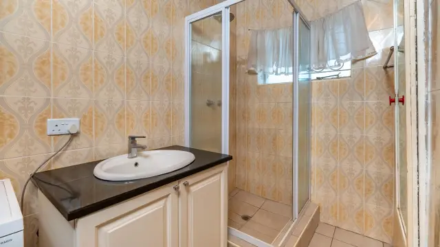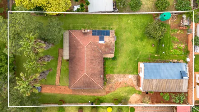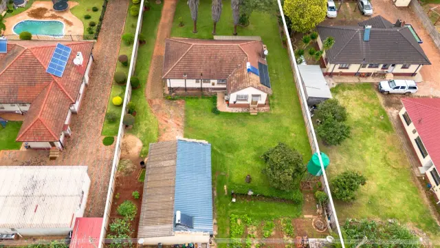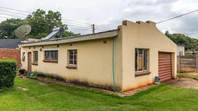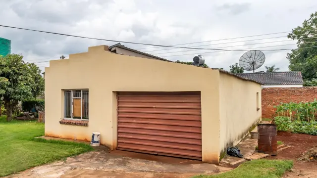 The fitted kitchen comes equipped with a gas stove, ensuring convenience for home-cooked meals. Each of the three bedrooms, including a master en suite, boasts built-in cupboards for ample storage. Enjoy the benefits of a solar system, borehole, and water tanks, promoting sustainability and cutting utility costs.