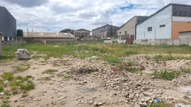 Adjacent industrial structures highlight the commercial viability of this location. The open areas present opportunities for expansion, although some debris is scattered throughout, indicating past neglect. The mixed-use environment further enhances the property's appeal, making it an excellent choice for businesses looking to establish a presence in a bustling area. Embrace the potential that this site has to offer; your next industrial venture awaits!