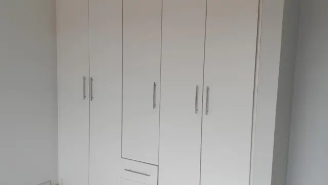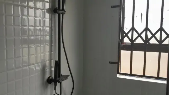 With two comfortable bedrooms, the flat is perfect for sharing or hosting guests. The bathroom is conveniently located, while the inclusion of built-in cupboards ensures you have plenty of storage. The tiled flooring throughout adds a touch of sophistication.