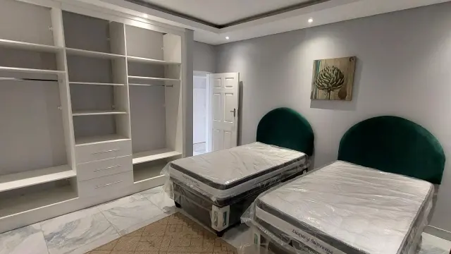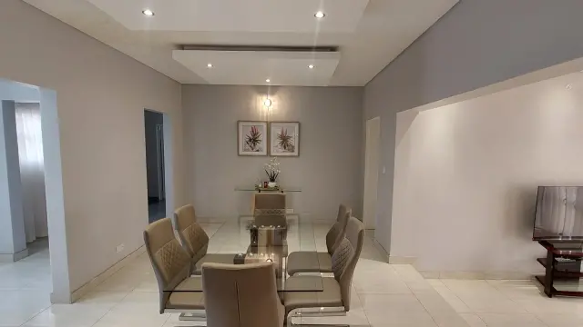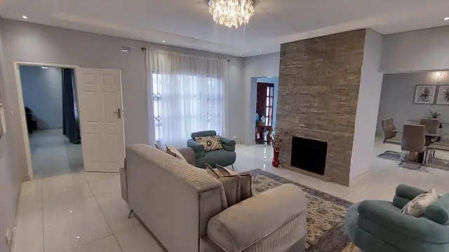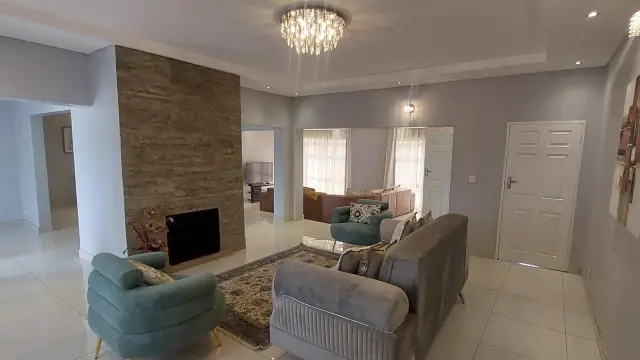 Discover a sanctuary in the vibrant heart of Westgate, Harare. This brand new home features 4 spacious bedrooms and 3 elegant bathrooms, accommodating both comfort and style. Step inside to a tastefully furnished living area, where natural light illuminates glossy tiled floors and a striking stone fireplace warms the space.