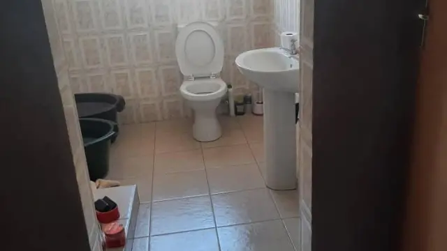 This charming house for rent in Damofalls offers a perfect blend of comfort and functionality. The property features three well-sized bedrooms, providing ample space for family living. The cozy living room is finished with light gray tiles and benefits from large windows, allowing for a bright and airy feel. A glass door opens out to the exterior, enhancing the connection with the outdoors.