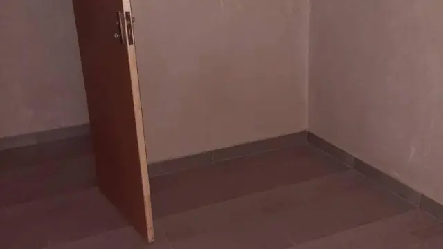 The compact kitchen is equipped for all your cooking needs, showcasing sleek gray tiles and practical storage solutions. Notably, one of the bedrooms has a stylish sliding glass door, adding modern flair and a cozy ambiance with its soft pink walls.